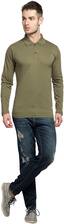 Alan Jones Solid Men's Basic Polo Neck Olive Full Sleeve Cotton T-Shirt