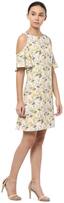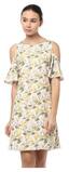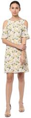 Add an intentional dose of chic to your casual outfit with this beige A-line dress from Solly by Allen Solly. Crafted from polyester;this cold shoulder dress features a boat neck;short sleeves and is detailed with floral print all over. Wear yours with suede ballerinas and a ladylike handbag.