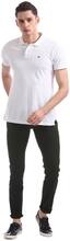 Expand your collection of work wear staples in style with fashionable designs like this solid pair of trousers from Arrow. Cut from light fabrics;this slim fit piece has a flat front and four handy pockets. Wear yours with a pressed shirt and polished brogues for a smart ensemble you can don through the week.