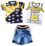 Make casual outings a stylish affair for your son with this cool printed tshirts & shorts set from MashUp. Set of 3 items: a printed polo tshirt;a white printed sleeveless tshirt and matching denim shorts. Fabric & finish: Made from skin-friendly cotton and cotton blends to ensure your boy's comfort all day. Style Tip: Complete the look with a pair of navy blue sneakers for a stylish outdoor look. Care Tip: Gentle hand/machine wash in cold water with like colours. Dry in shade. Use light iron (on reverse side for tshirt).