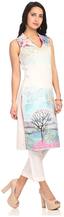 BIBA Women White Printed Straight Kurta