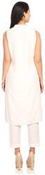 Off White Straight Art Silk Kurta with cotton lining;V-neck & side-slits