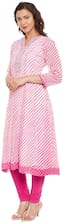 Pink has all the charm and so has this beautiful suit set! This pink suit set is crafted from fine Poly Cotton that makes it a must-buy thing this summer. The kalidar kurta is beautified with silver embroidery at the neckline and the hemline features cross checks pattern. The Leheriya print on the kurta makes it a very stunning traditional piece. The matching churidar and dupatta complete the look for any occasion. The dupatta looks elegant with thin silver patti on the borders. Wear it with silver heels and bold earrings.