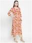 Indibelle Women Rayon Printed Pink & Cream Kurta With Pants