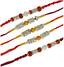 Purvani Set of  5 Stone & Pearl Rakhi /  Rakhi for Brother with Rakshabandhan Card & Roli Chawal