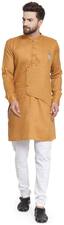 RG Designers Cotton Full Sleeve Gold Designer Kurta With White Churidar For Men