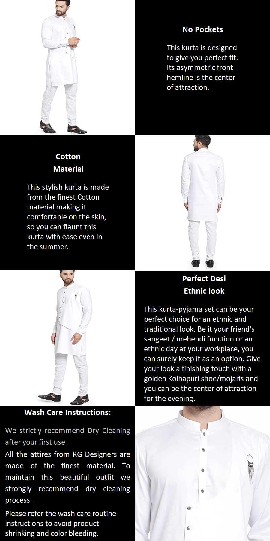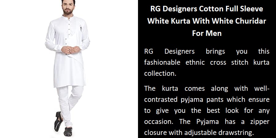 About the productWhite solid kurta with pyjamas.White straight knee length kurta | has a mandarin collar | long sleeves | asymmetric hem | side slits.slip-on closure.