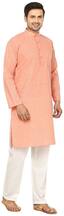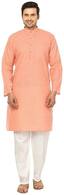 Royal Men's Light orange Linen Cotton Kurta Pyjama Set For Comfort Wear