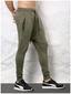 Olive green drop crotch joggers;has an elasticized and ribbed waistband with drawstring fastening;two zip pockets on the front;two welt pockets on the back;ribbed hems.Match these olive green joggers with a grey hoodie tee. Carry off this athleisure style with confidence by stepping into a pair of trainers or loafers. Finish off the look with a pair of aviators.Slim fit;The model (height 6'1 and waist 32) is wearing a size M