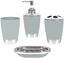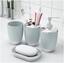 This is a set of 4 pieces bathroom suit accessories including soap dispenser;washing cup;toothbrush cup and soap dish. PP plastic construction makes these container very durable in use. Convenient bathroom suit set.