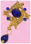 Material:Gold Plated Brass;Rhinestone Blue And Yellow Crystal;Crystal Shape is Round And Prism;Brooch:-Height is 70;width 35mm;Safety Pins Clasp