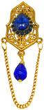 Material:Gold Plated Brass;Rhinestone Blue Crystal;Crystal Shape is Round And Prism;Brooch:-Height is 80;width 27mm;Safety Pins Clasp